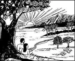 Au commencement, Dieu a créé le ciel et la terre et tout ce qui existe. Dieu a aussi créé lʼhomme. Toute la création était belle et complète.